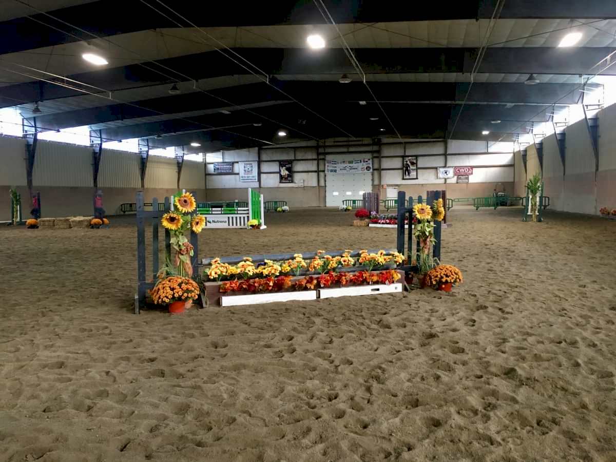 Elite indoor equestrian center: 2 round pens, 100 stalls, heated wash racks, and more services.